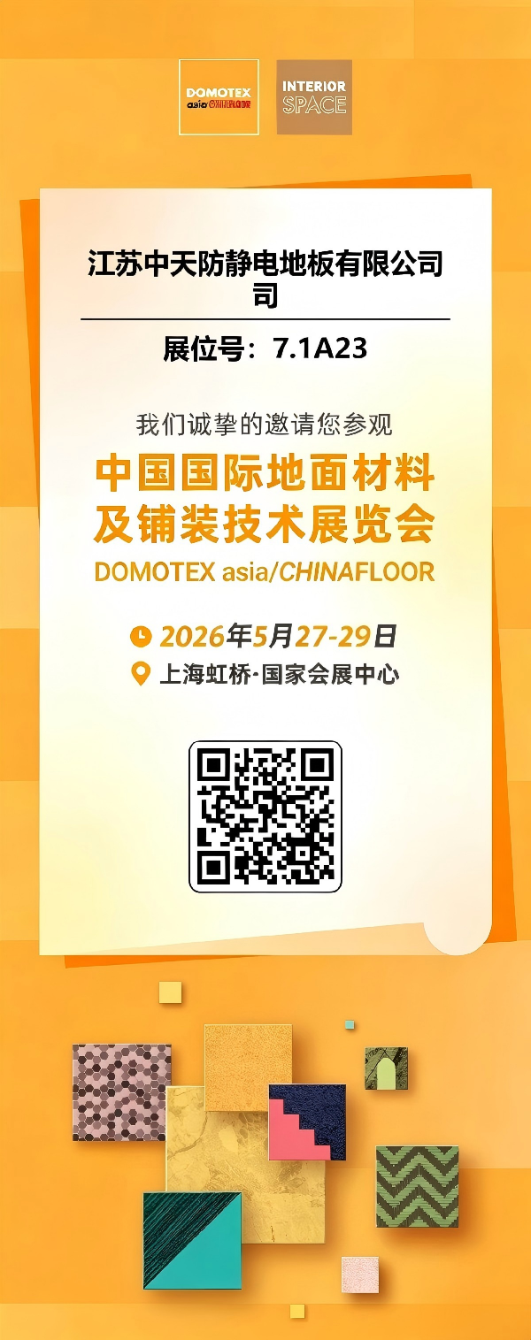 江苏中天防静电地板有限公司诚挚地邀请您参观我们即将参加的DOMOTEX asia/CHINAFLOOR展览会。